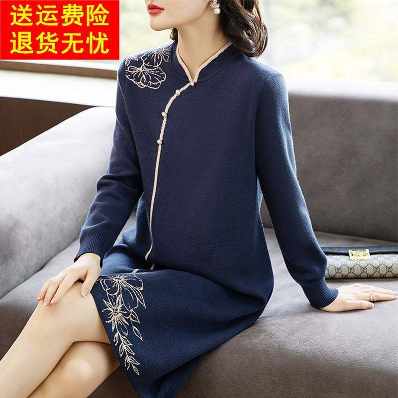 【商场同款】黛玛诗国风新中式改良旗袍冬针织连衣裙女DC05036254