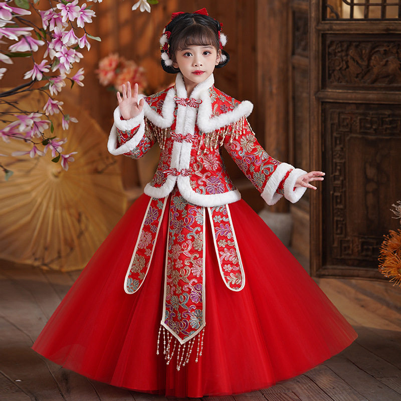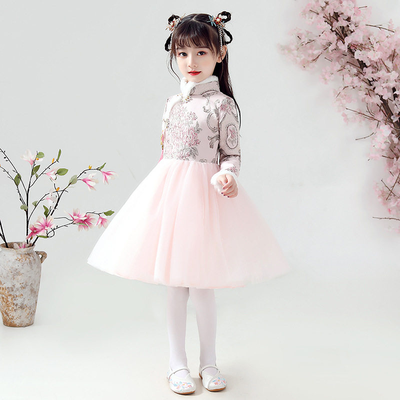 女童改良旗袍冬季汉服加厚唐装公主裙冬装裙子国潮亮片礼服连女童