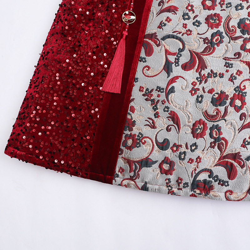 女童改良旗袍冬季汉服加厚唐装公主裙冬装裙子国潮亮片礼服连衣裙