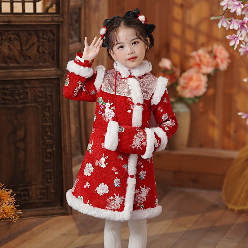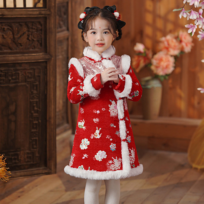 2025新款中国风儿童中式改良旗袍冬装加厚拜年服女孩新年装主