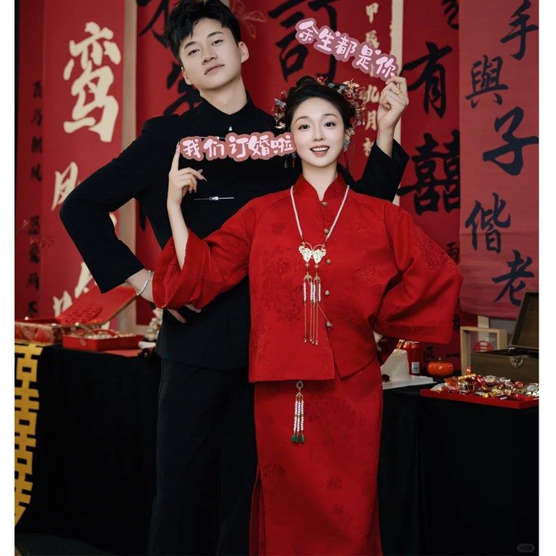 套装敬酒服女新娘新中式改良旗袍冬季红色婚礼订婚礼服裙女回门宴