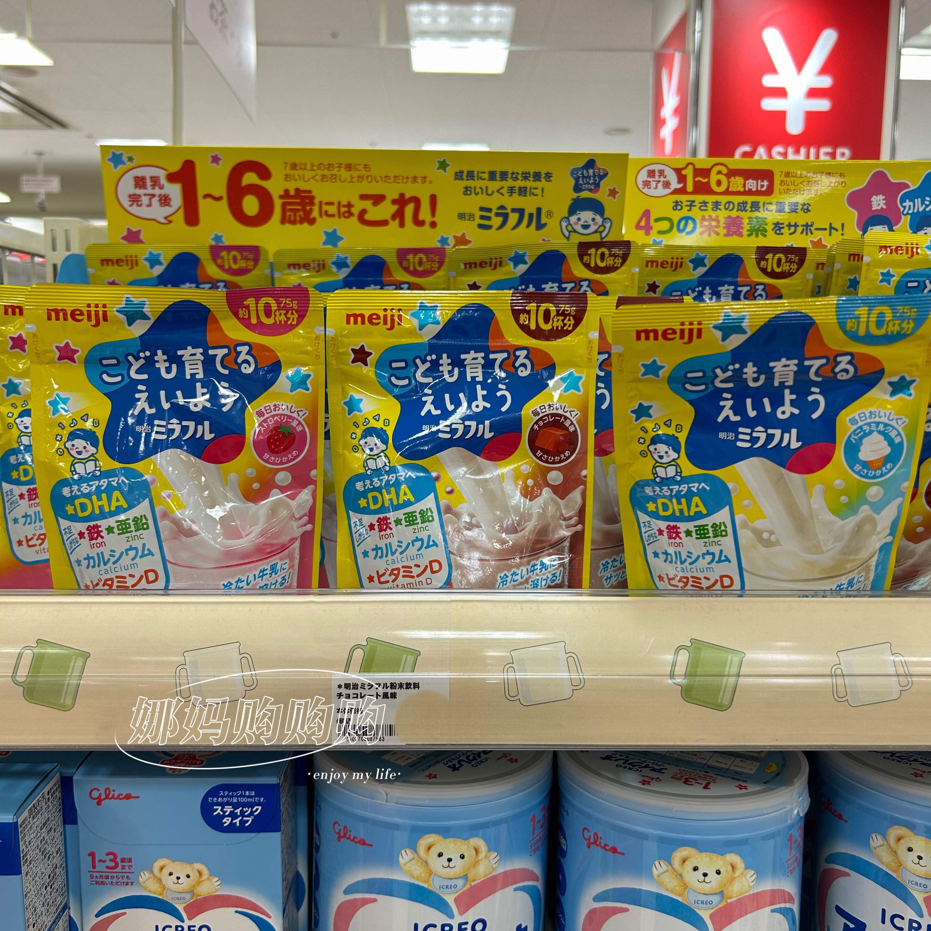 日本直邮meiji明治儿童成长奶粉牛乳草莓可可DHA锌铁钙营养吸吸乐