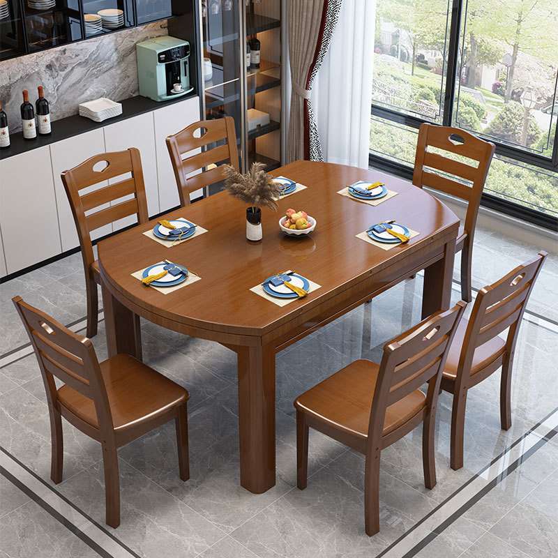 全实木餐桌椅组合餐桌家用伸缩折叠现代简约吃饭桌小户型可变圆桌
