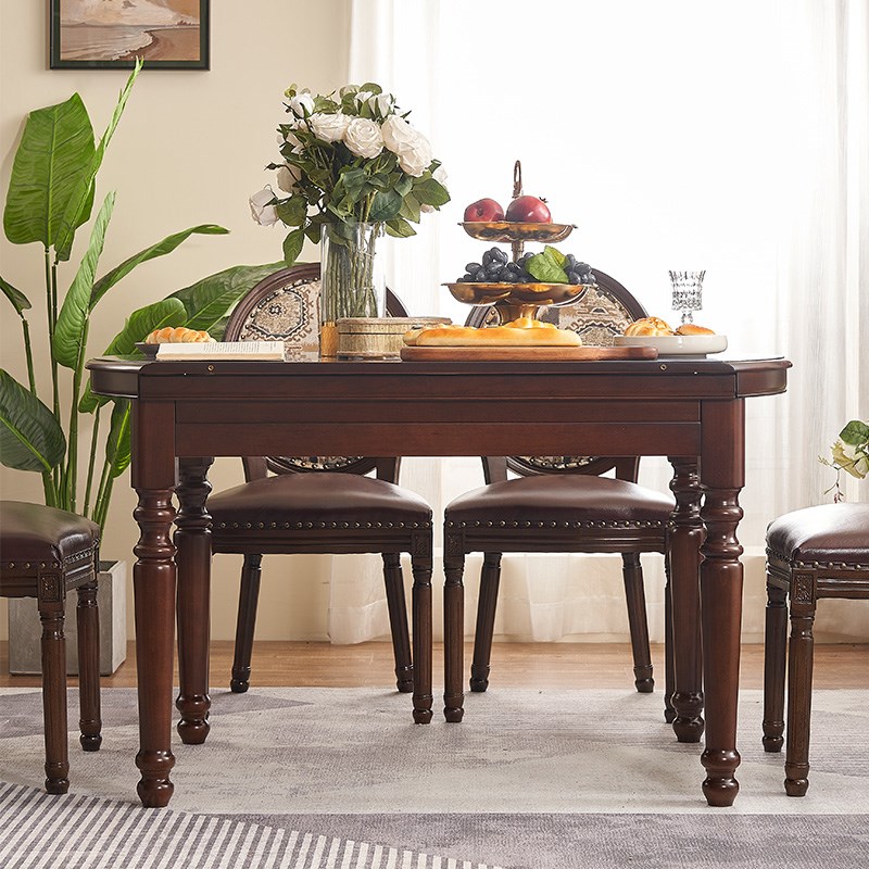 美式全实木伸缩餐桌椅组合折叠圆桌长桌变圆桌小户型多功能长餐桌