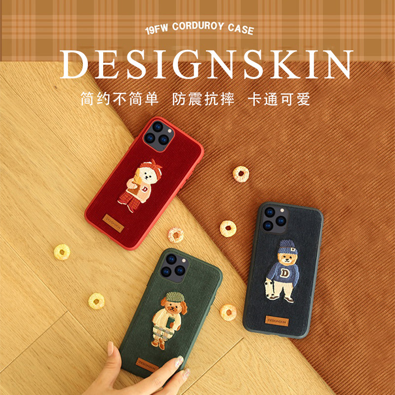 韩国灯芯绒iPhone12promax手机壳苹果X刺绣xs情侣款7plus毛绒8潮11