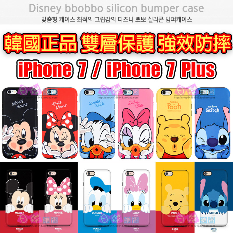 韩国Disney正品适用于iPhone7plus手机壳双层7防摔苹果8保护套8plus卡通