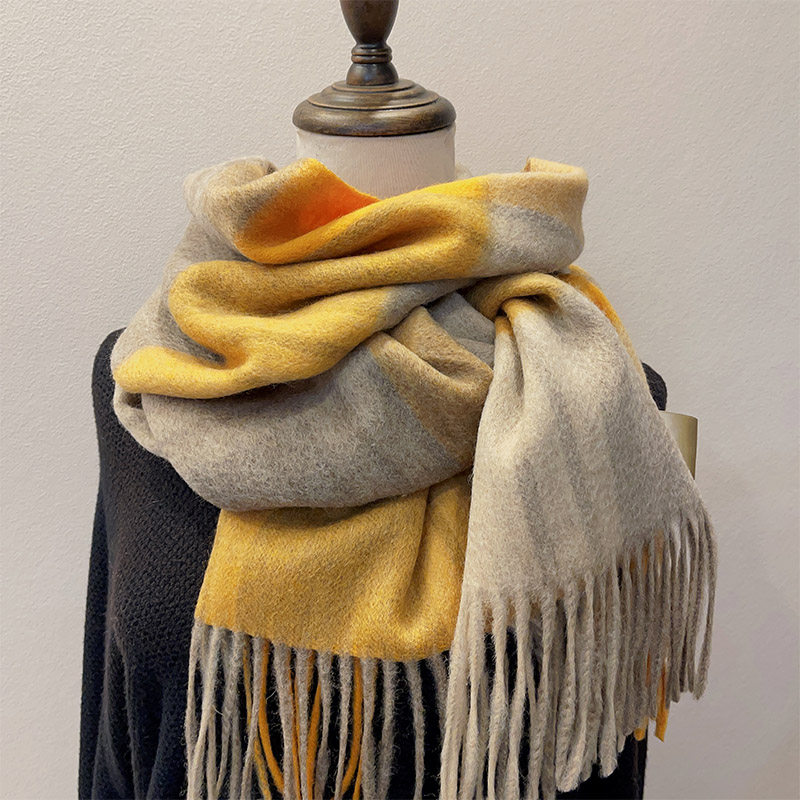 韩版蓝色卡通刺绣围巾女冬季保暖百搭针织围脖情侣款加大加宽双面