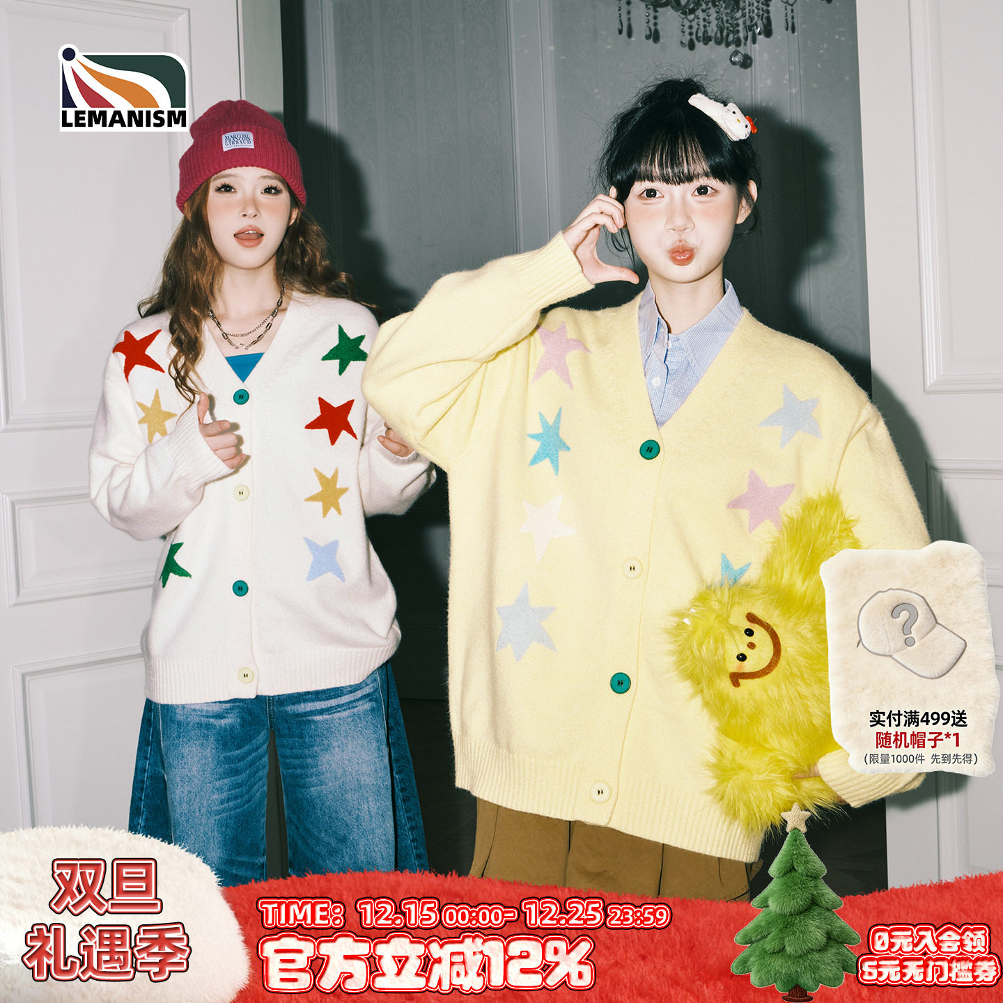lemanism美式潮流彩色星星开衫毛衣男秋季情侣款休闲针织衫女线衣