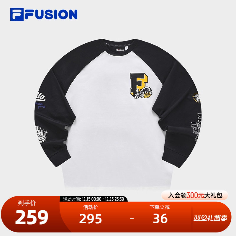 FILA FUSION斐乐潮牌情侣款针织长袖衫冬款纯棉宽松拼接上衣