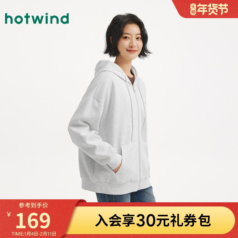 热风女士连帽开衫卫衣2025年秋季新款休闲宽松慵懒风轻薄外套卫衣