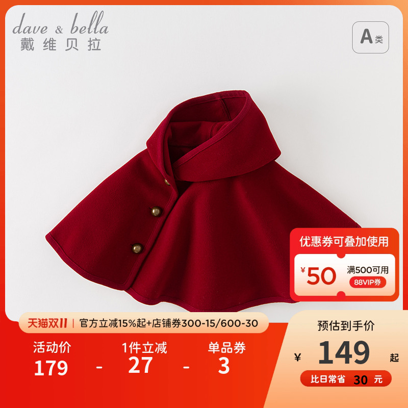戴维贝拉婴儿斗篷秋装儿童披风女童新年红色披肩外出挡风宝宝外套