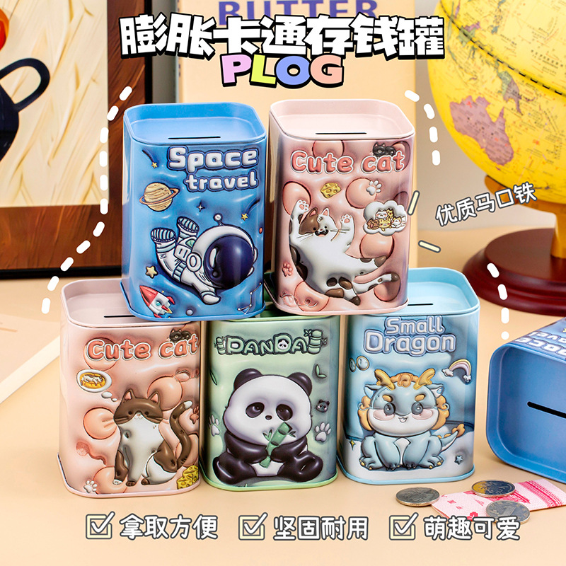 儿童存钱罐创意马口铁质可爱卡通储钱罐储蓄罐零钱收纳硬币筒礼品