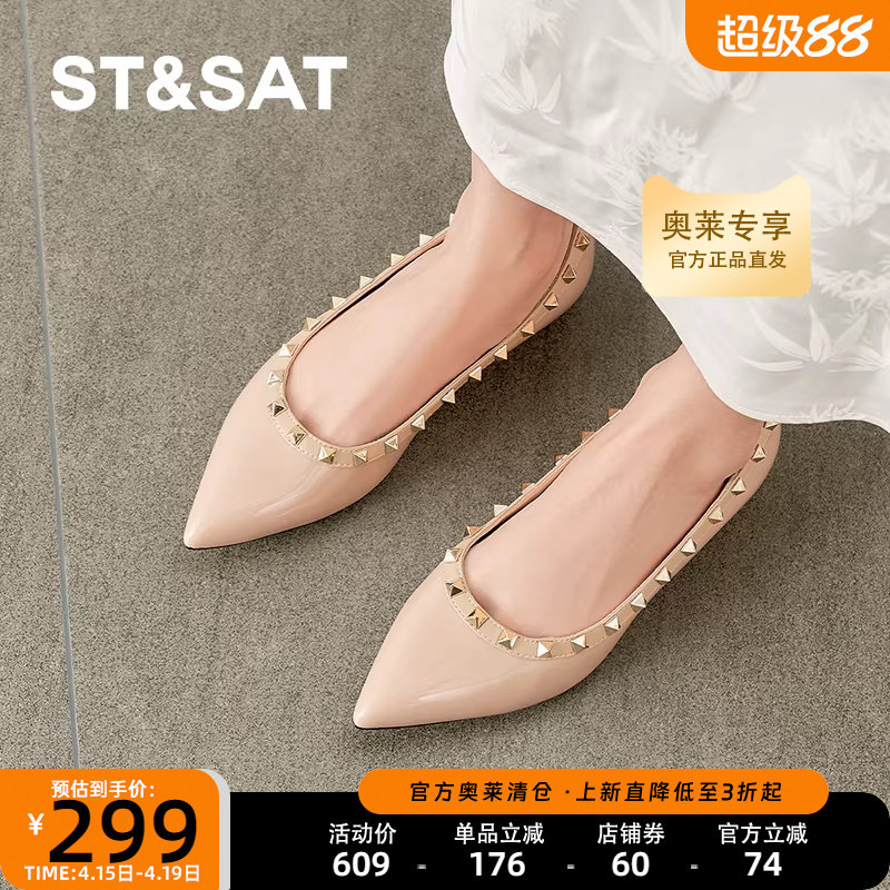 星期六平底单鞋春季新款尖头浅口铆钉网红百搭舒适女鞋SSD1111460