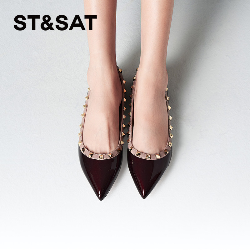 星期六浅口单鞋秋季新款铆钉潮流平底散步百搭女鞋SSD1111460