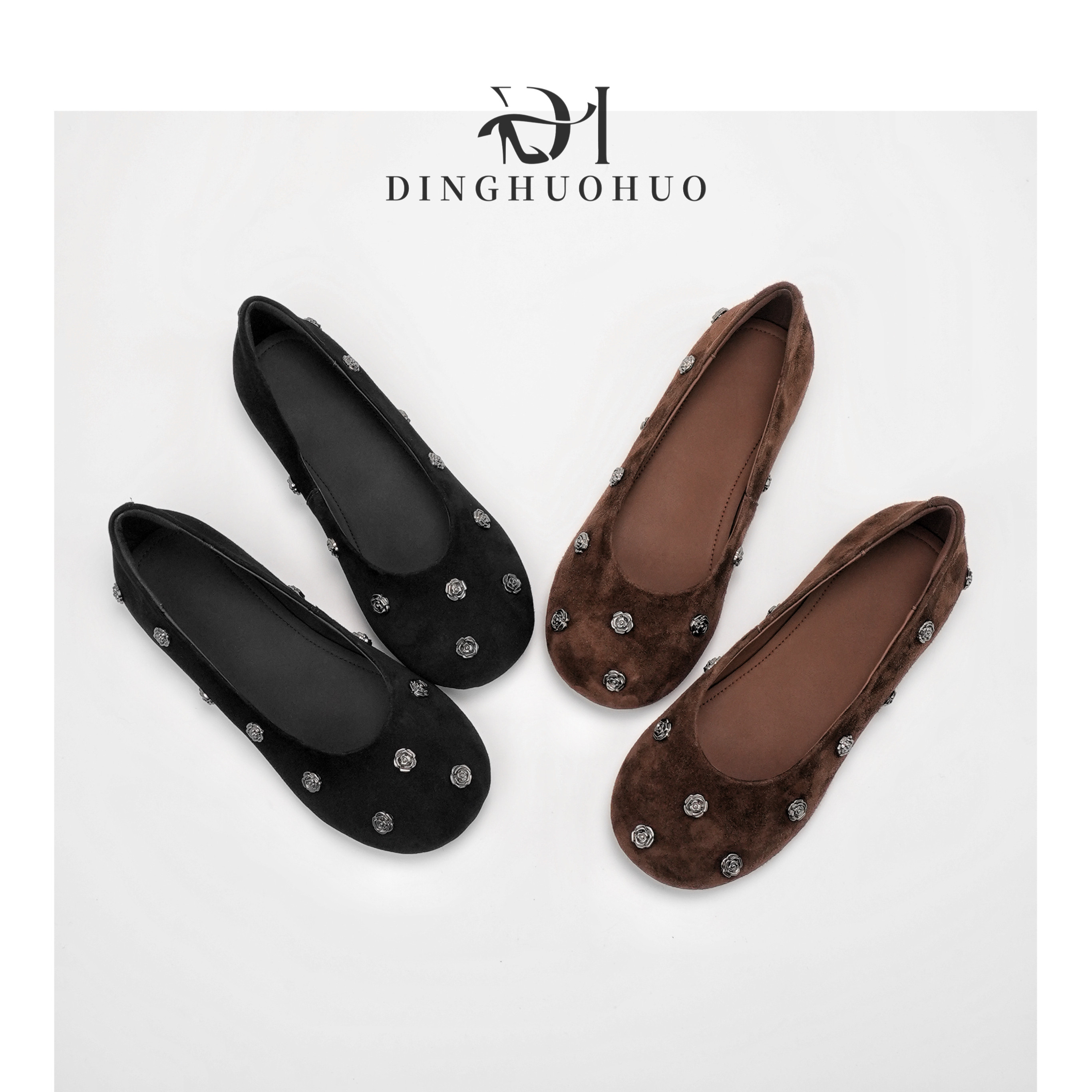 MD女鞋·鹿聆·小香风单鞋法式铆钉芭蕾鞋平底鞋长毛绒铆钉玛丽珍