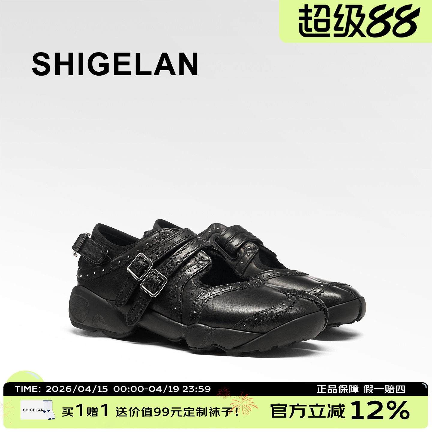 诗歌兰2026新款黑色玛丽珍鞋双扣带分趾休闲铆钉单鞋时尚简约女鞋