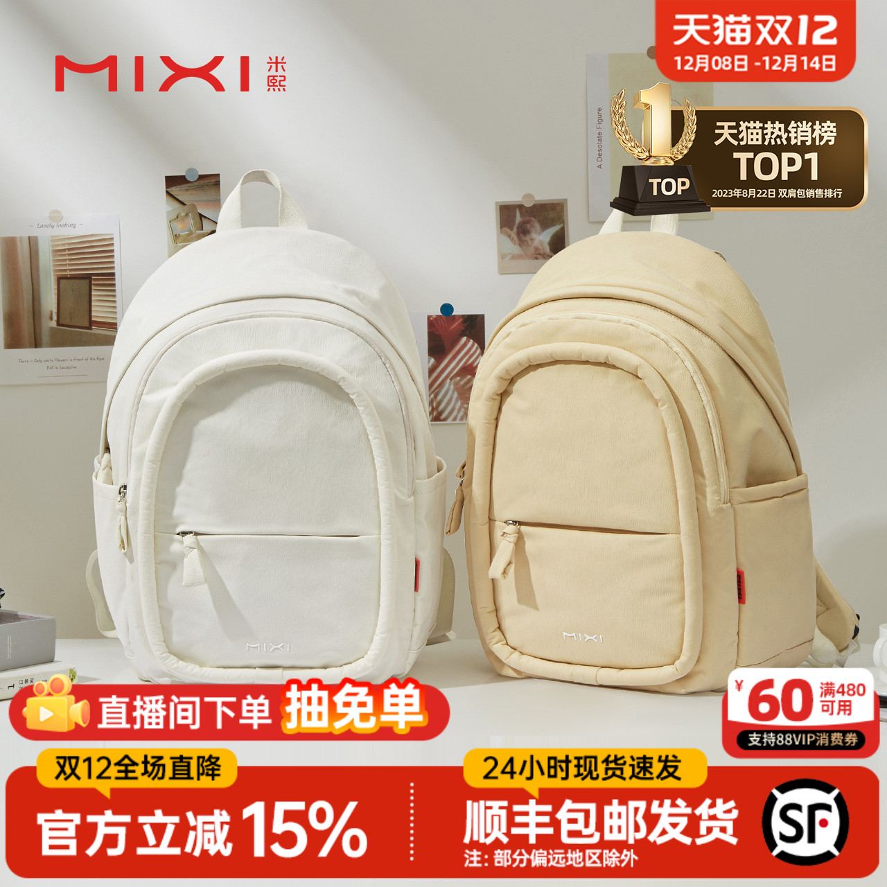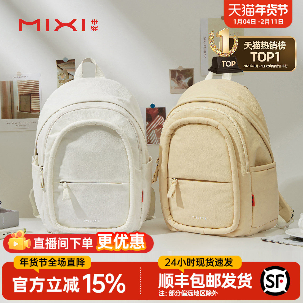 米熙双肩包2025新款女生大学生书包大容量电脑包运动旅行背包男