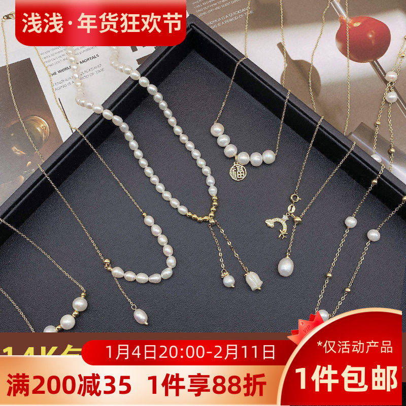 回馈!进口施家珍珠/天然淡水珍珠14K包金项链锁骨链女简约轻奢