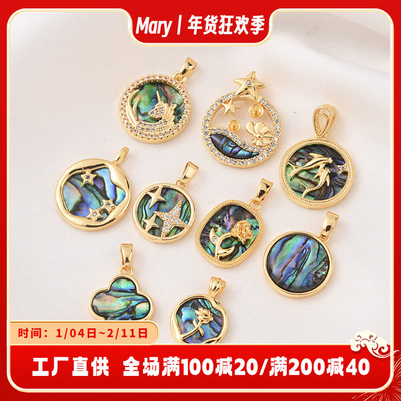 14K包金微镶巴洛克风鲍鱼贝吊坠手工diy项链项坠材料锁骨链吊饰