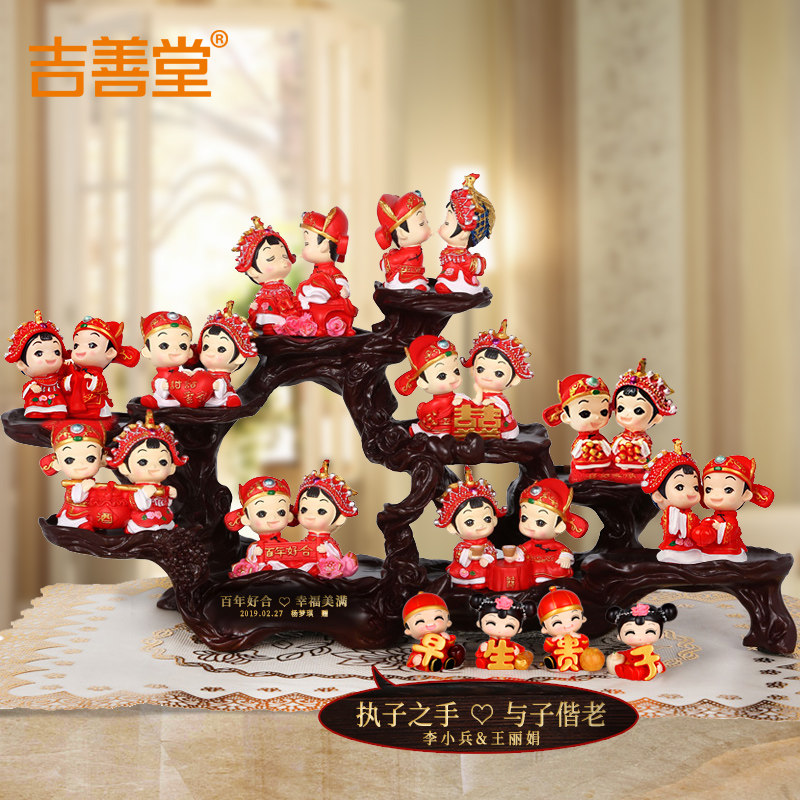 足金金箔新婚娃娃结婚礼物送新人闺蜜实用大气桌面摆件创意装饰画