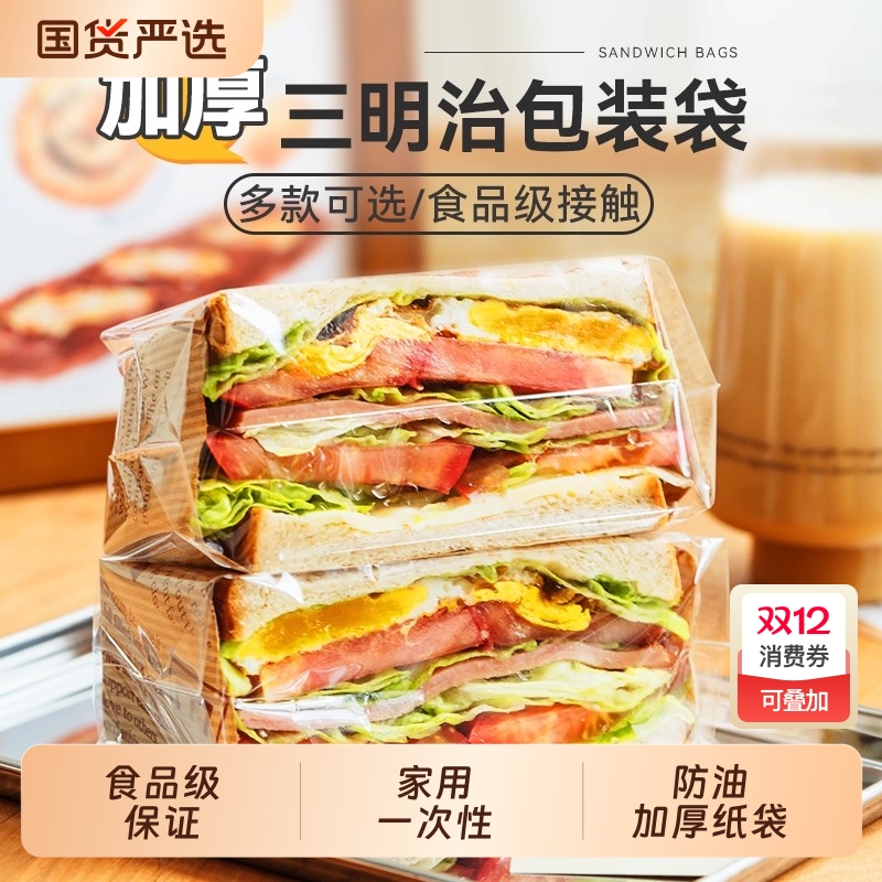三明治包装纸家用食品级自制汉堡防油纸袋可切透明塑料打包外带的