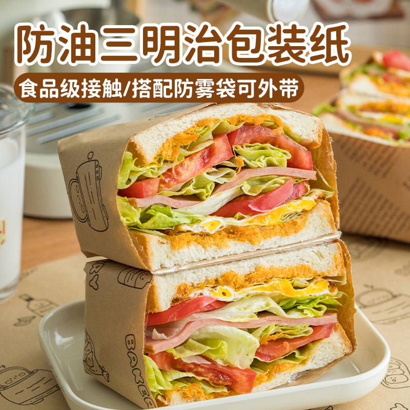 三明治包装纸早餐吐司三文治盒汉堡卷饼一次性食品防油纸烘焙家用