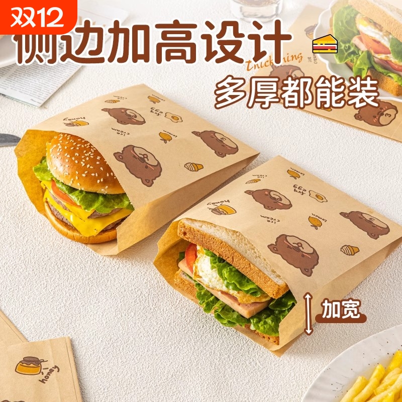 汉堡三明治包装纸袋早餐手抓饼煎饼鸡蛋灌饼防油打包袋食品袋定制