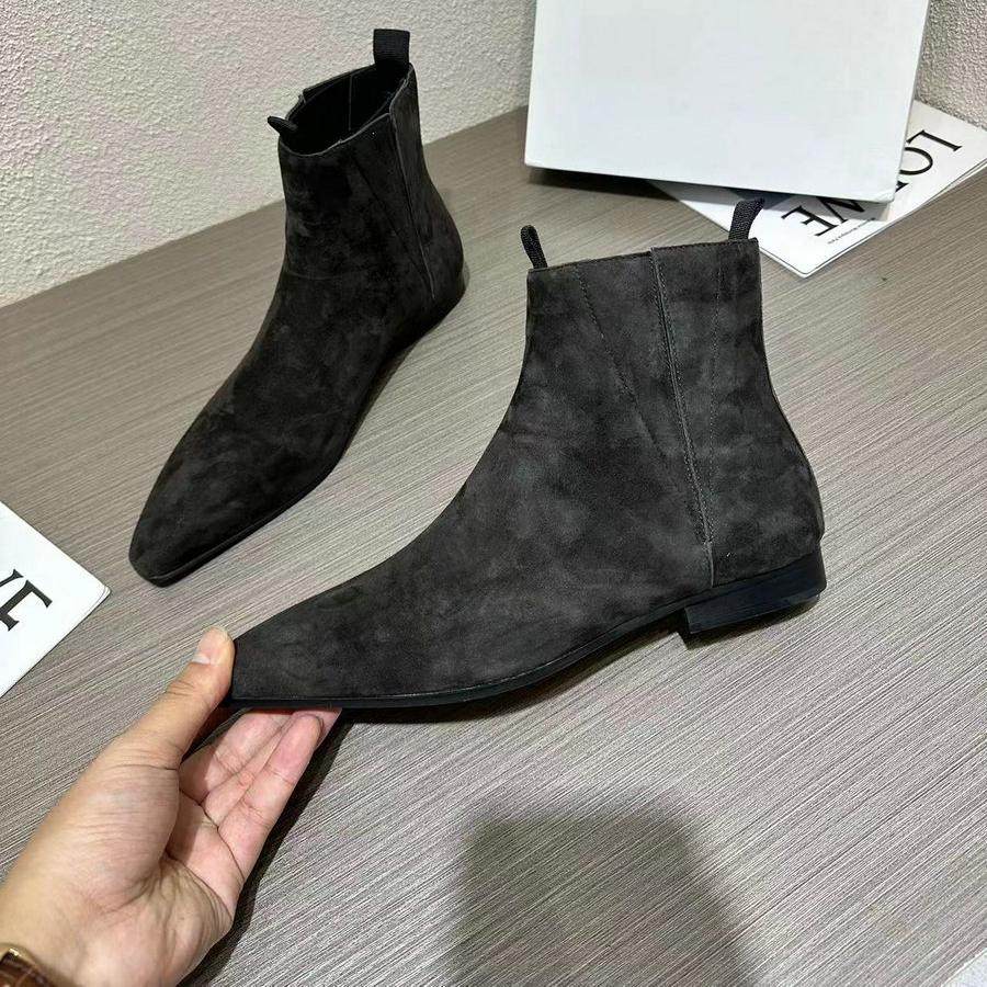 欧洲站真皮女靴2025秋款尖头平底英伦风磨砂皮短靴切尔西靴马丁靴