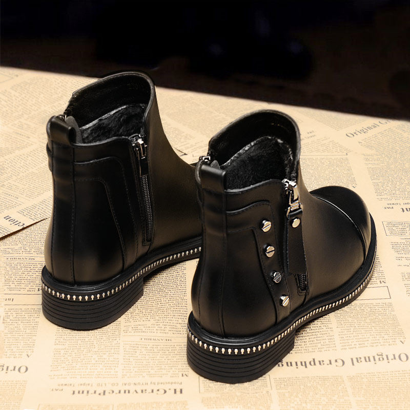 工厂清仓2021秋款真皮女鞋休闲平底马丁靴后拉链牛皮女短靴女靴