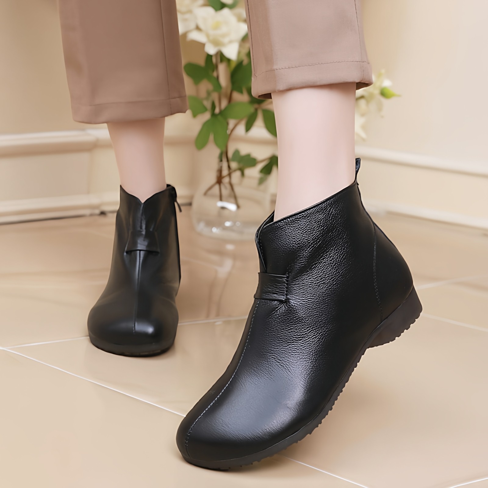 日系休闲女靴轻便百搭通勤短靴秋款妈妈靴子平底防滑中老年鞋1137