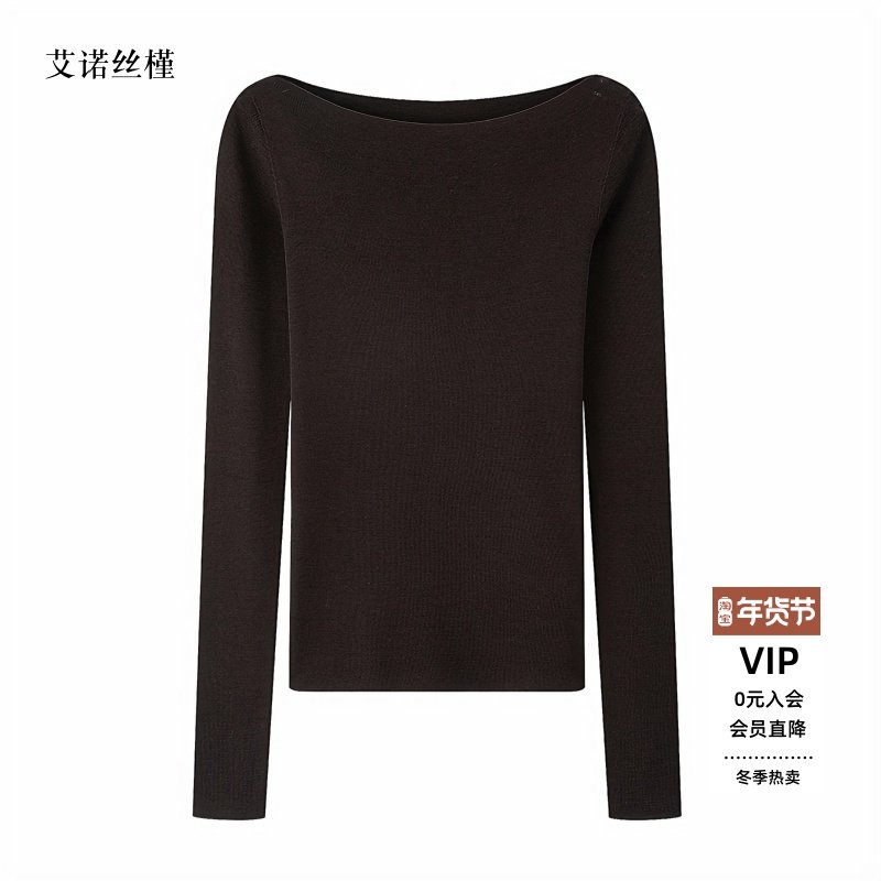 ariosee艾诺丝槿2025新款官方旗舰店秋一字领打底针织衫AR804008