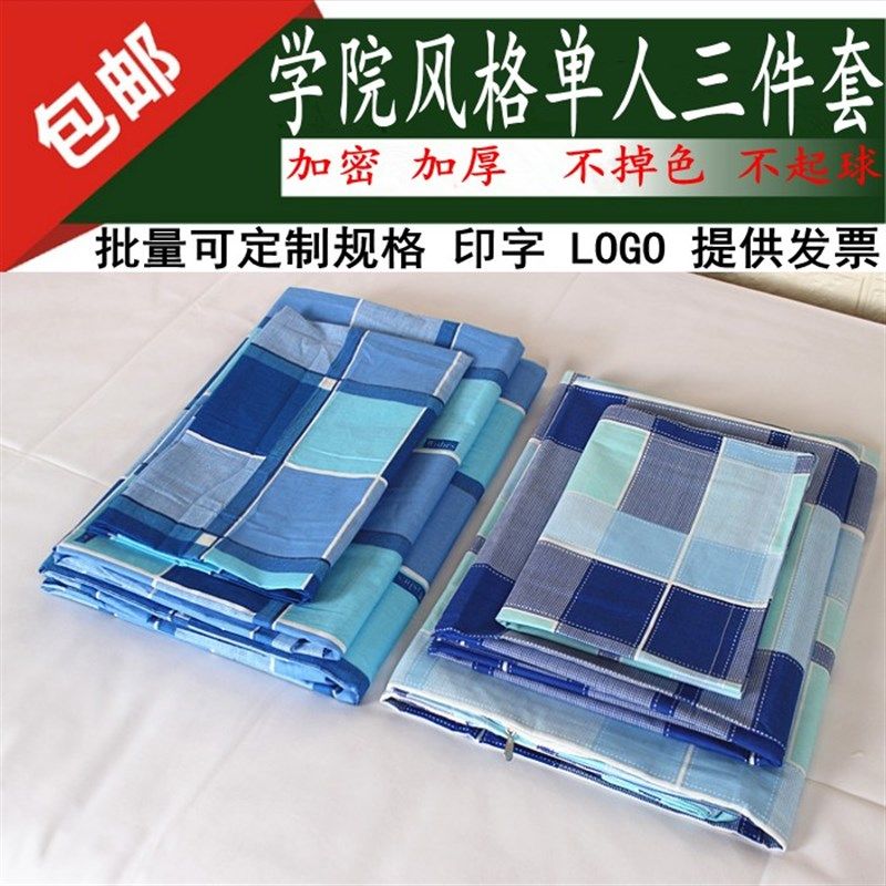 宿舍三件套 蓝绿格被罩纯棉单人大学生床单被L套枕套1.2m床上用品