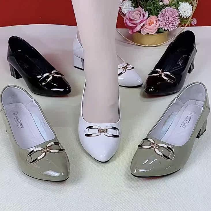 - 粗跟皮鞋 女 真皮