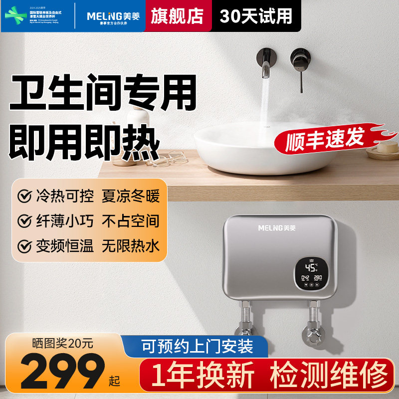 美菱小厨宝洗手台下电热水器即热式小型尺寸卫生间家用速热下出水
