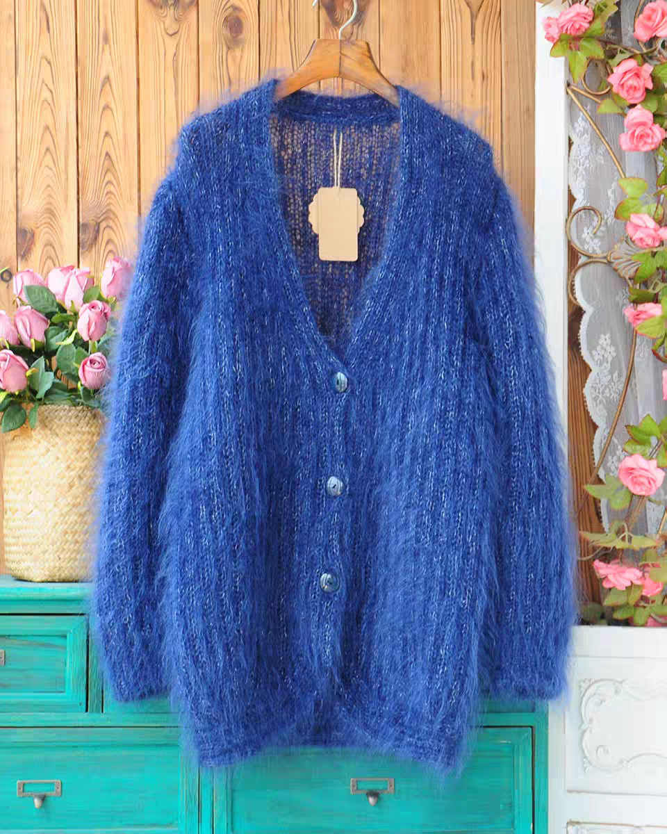 高品质超长马海毛开衫 文艺复古V领宽松大毛衣秋冬慵懒风保暖外套