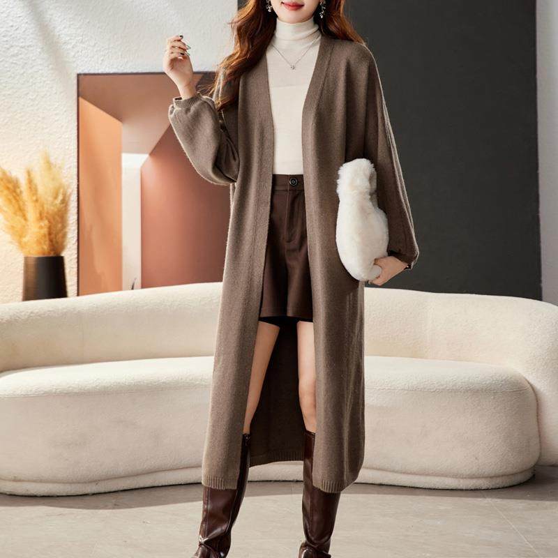 Yuanyin复古文艺高端女针织宽松oversize超长外套羊绒开衫毛衣