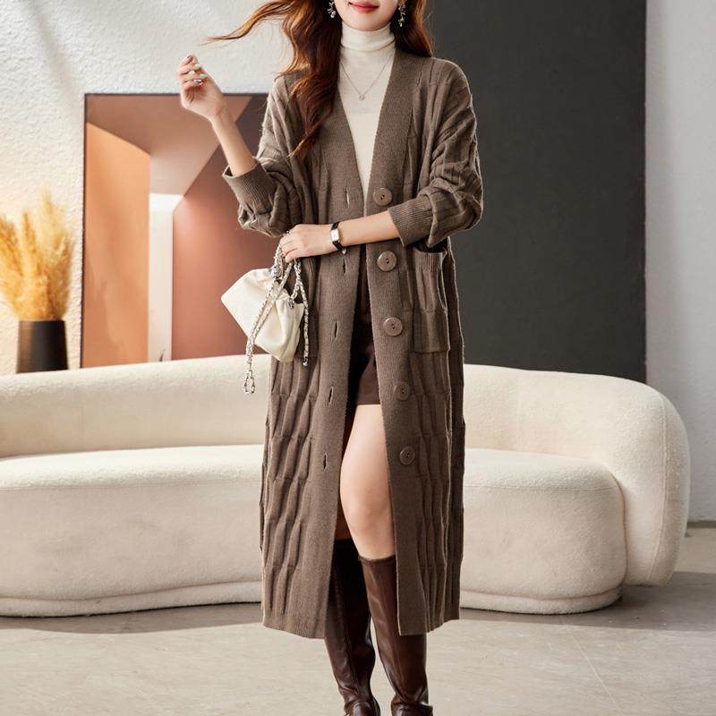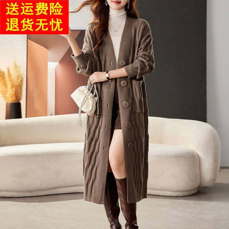 高级感气质中长款针织开衫女秋冬2025慵懒风通勤百搭超长毛衣外套