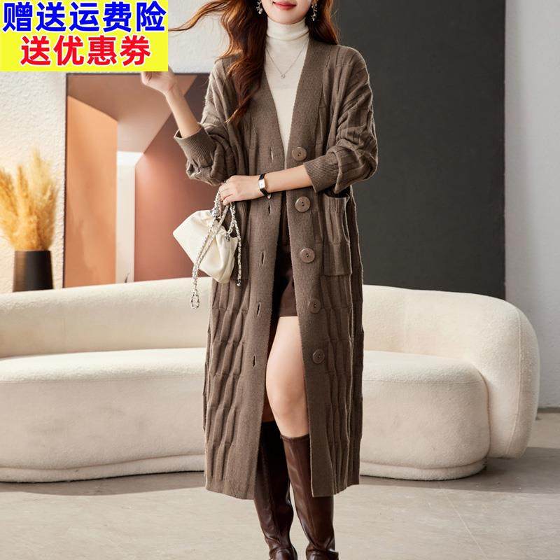 慵懒风高个子针织开衫毛衣女秋冬季新款韩版超长款过膝连衣裙外套
