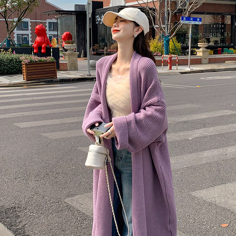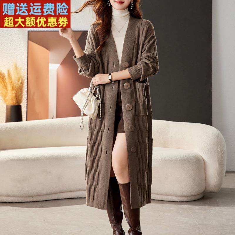 针织开衫超长款毛衣外套女春秋中长款过膝外搭长衫休闲外披秋披风
