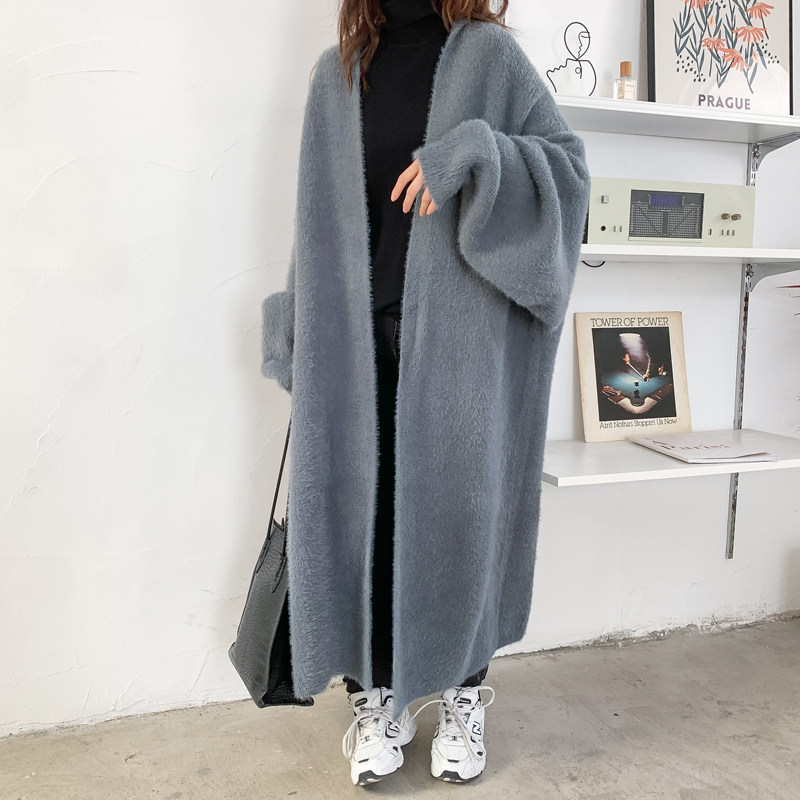 秋冬超长款仿水貂绒毛衣开衫女2023新款宽松慵懒针织外套气质大衣