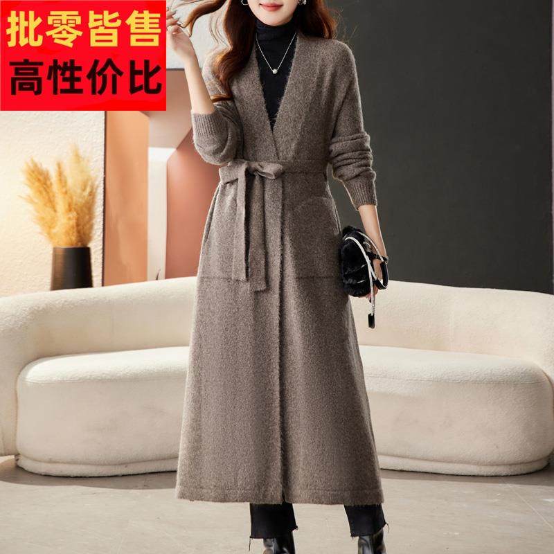 秋冬高级感灰色超长款针织开衫毛衣外套女仿水貂绒过膝长袖厚气质