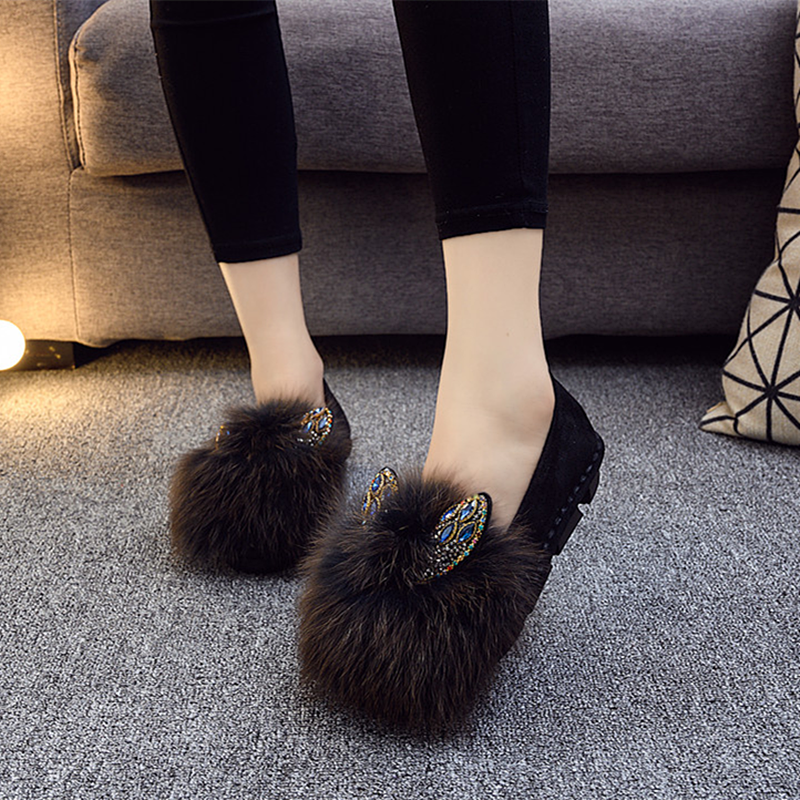 欧洲站2025秋冬新款棉瓢鞋外穿狐狸毛女鞋真毛厚底加绒爆款毛毛鞋
