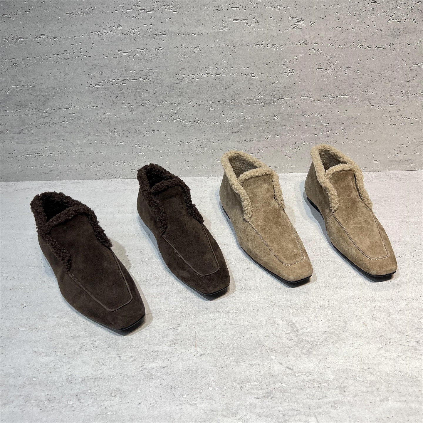 欧洲站女2025秋冬新款欧货真皮方头平底羊毛保暖深口毛毛鞋乐福鞋