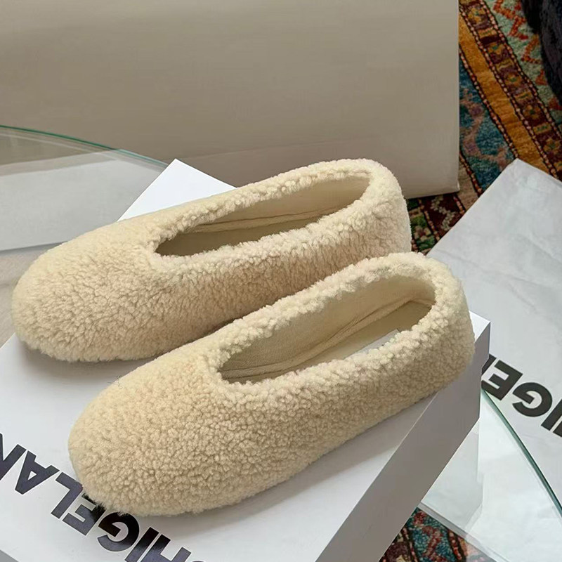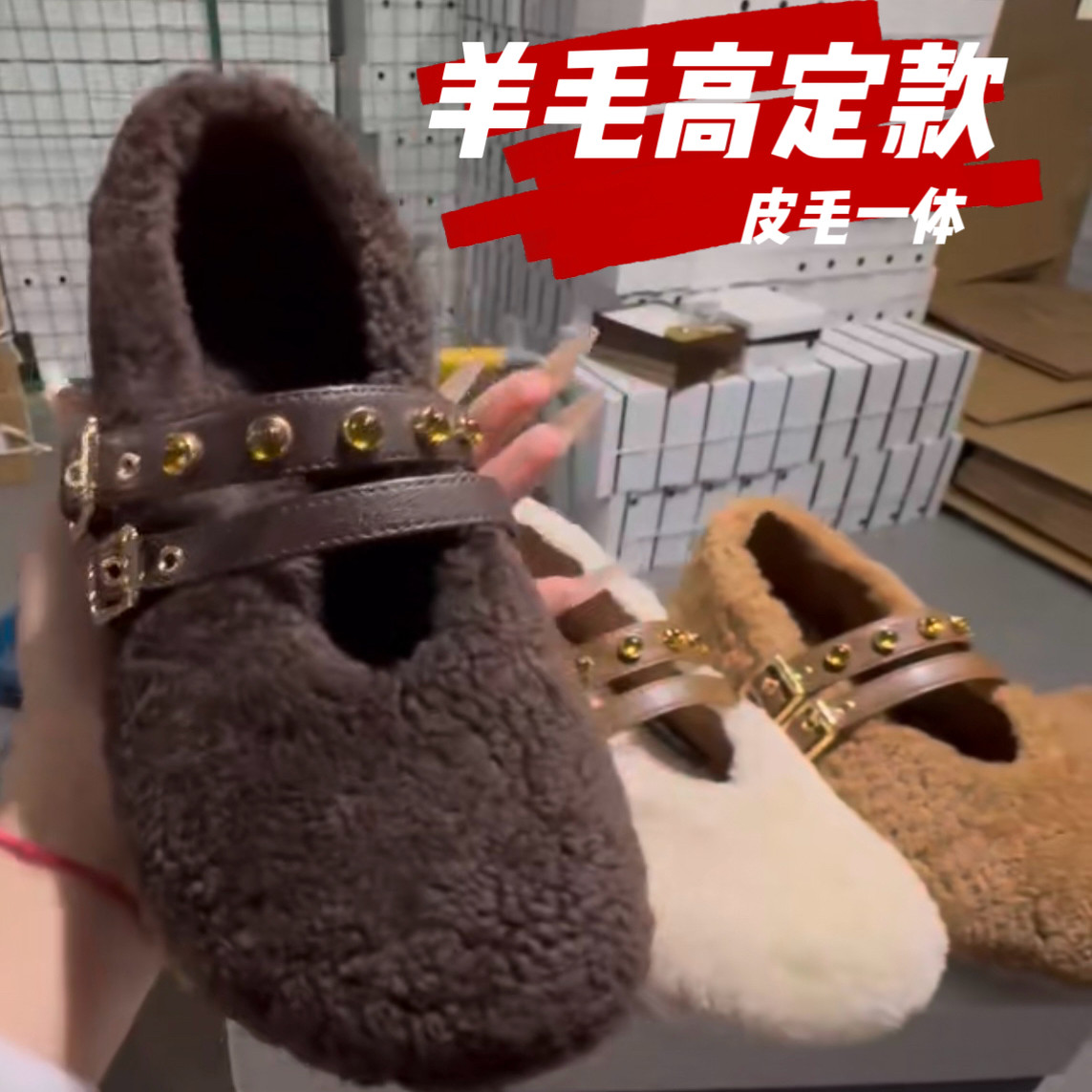 欧洲站2025冬季新款加绒毛毛鞋毛绒芭蕾单鞋女外穿棉鞋女鞋羊毛鞋