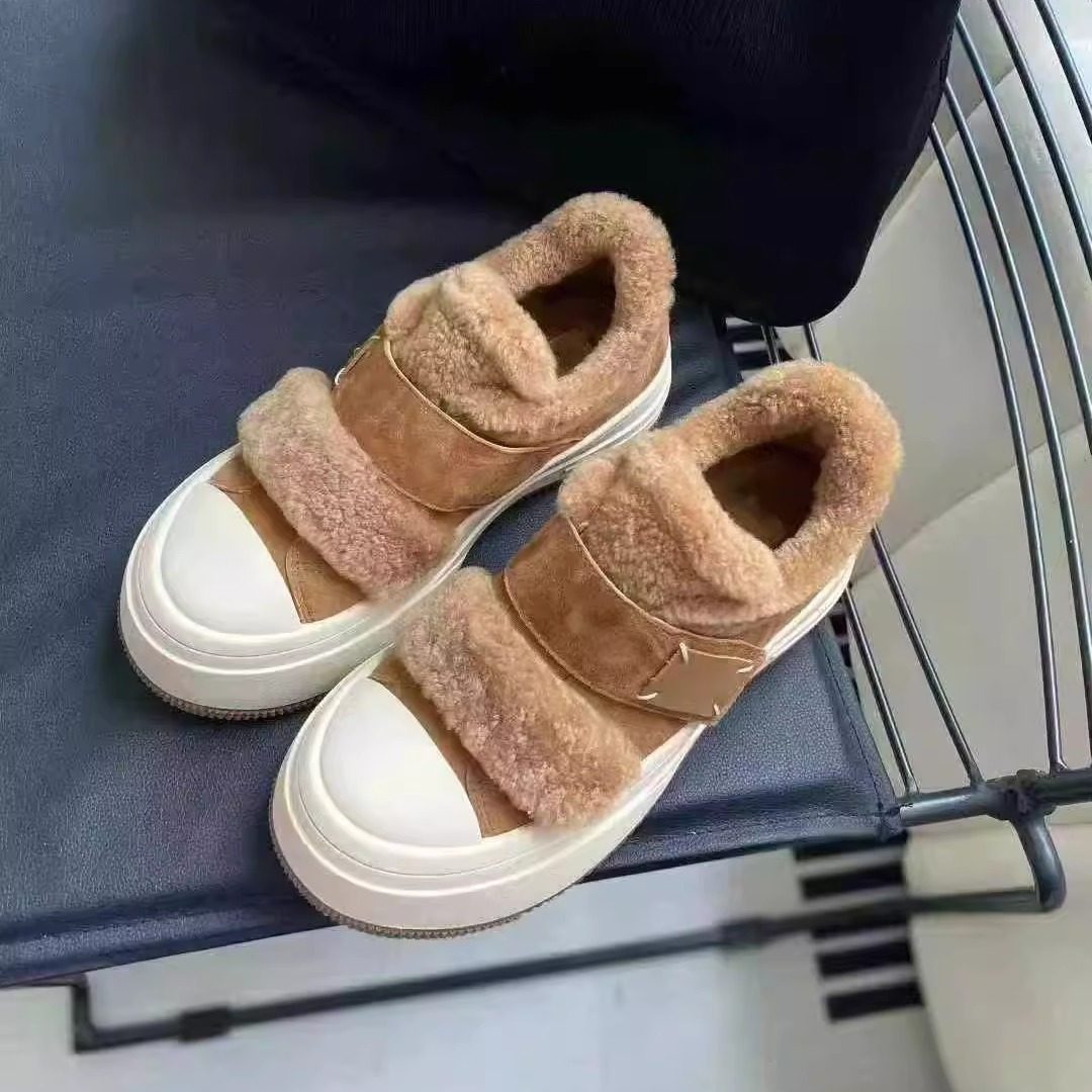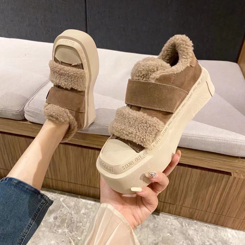 欧洲站2025冬季新款羊毛毛鞋女加绒保暖棉鞋真皮厚底板鞋女休闲鞋