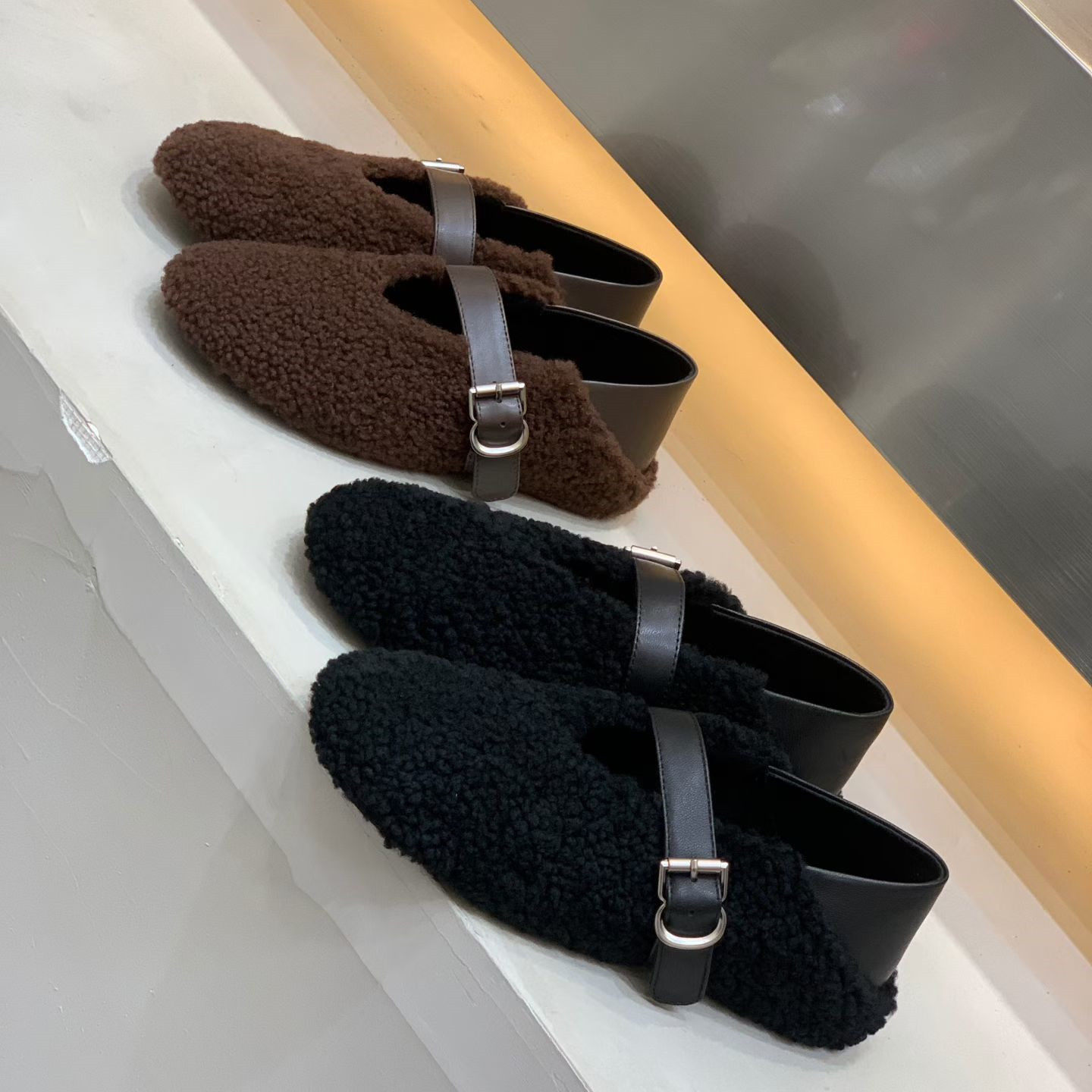欧洲站欧货2025冬季新款女鞋羊毛保暖平底毛毛鞋圆头时尚玛丽珍鞋