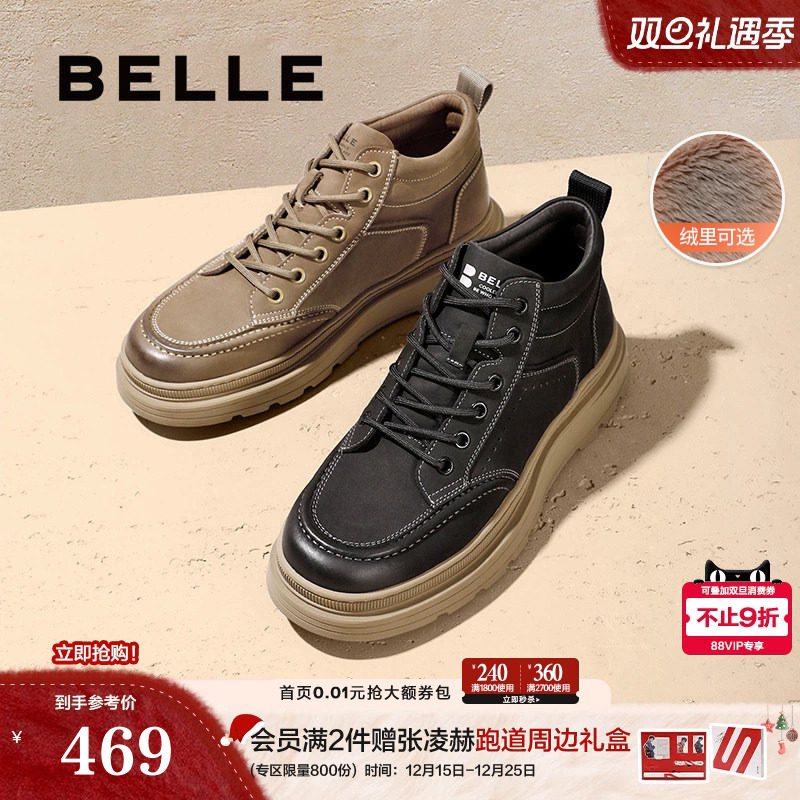 百丽男鞋加绒休闲鞋真牛皮厚底增高马丁靴高帮板鞋短靴子A1332DD3