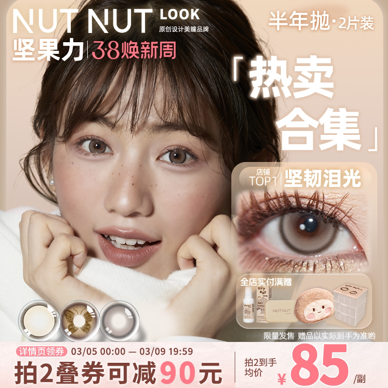 半年抛坚果力美瞳原创设计师品牌坚韧泪光2片大中小直径隐形眼镜