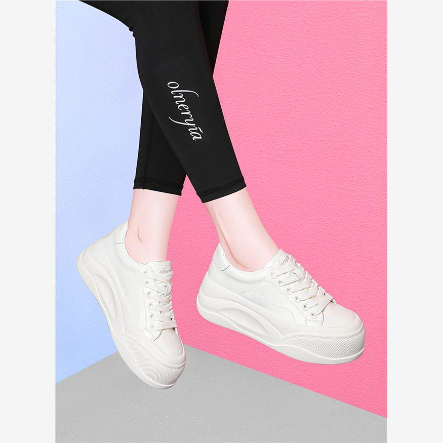 红蜻蜓女鞋春秋款2024新款厚底鞋子内增高休闲平板鞋小白鞋女真皮