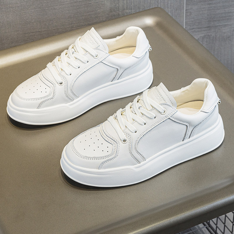 真皮小白鞋女厚底2024春季新款爆款透气休闲板鞋小个子百搭平板鞋
